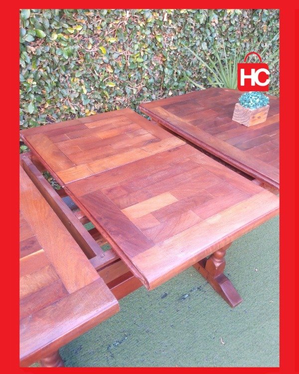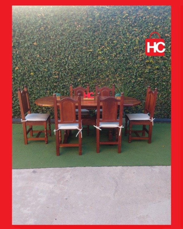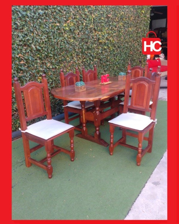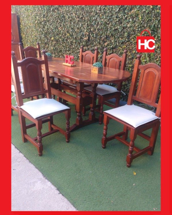 ¿Buscando renovar el comedor con algo de categoría? Este juego es impecable. La mesa tiene un sistema de extensión súper práctico y las sillas tienen un diseño de respaldo alto muy estético y cómodo. La madera tiene un lustre que resalta en cualquier ambiente. Es la oportunidad ideal para equipar tu casa con muebles de verdad a un precio excelente.