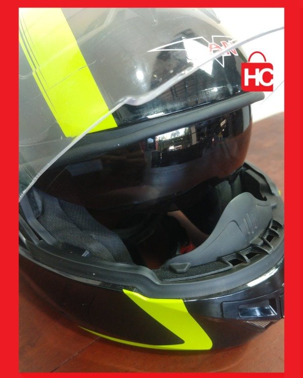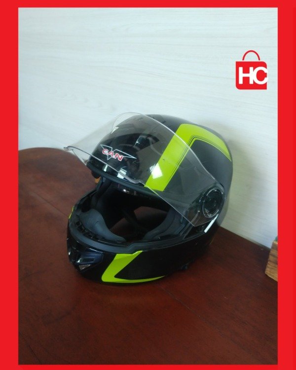 ¿Salís a la ruta y buscás protección sin resignar estilo? Este casco CAN es el compañero ideal para tus viajes. 🏍️✨ Con su diseño aerodinámico en negro y detalles en amarillo flúor, no solo te brinda la seguridad que necesitás, sino que asegura que seas visto en todo momento, dándote esa tranquilidad extra al manejar.