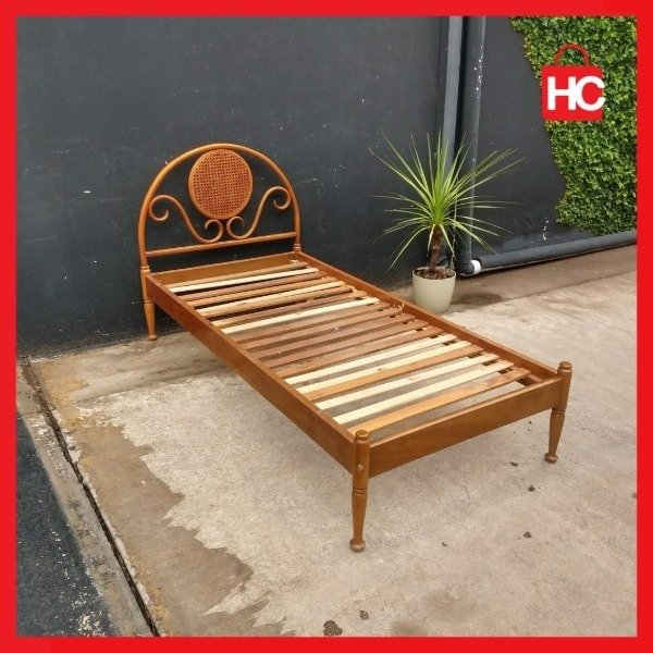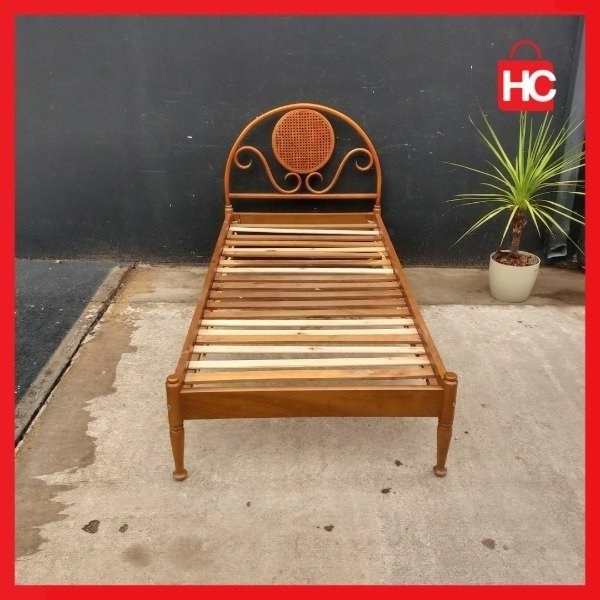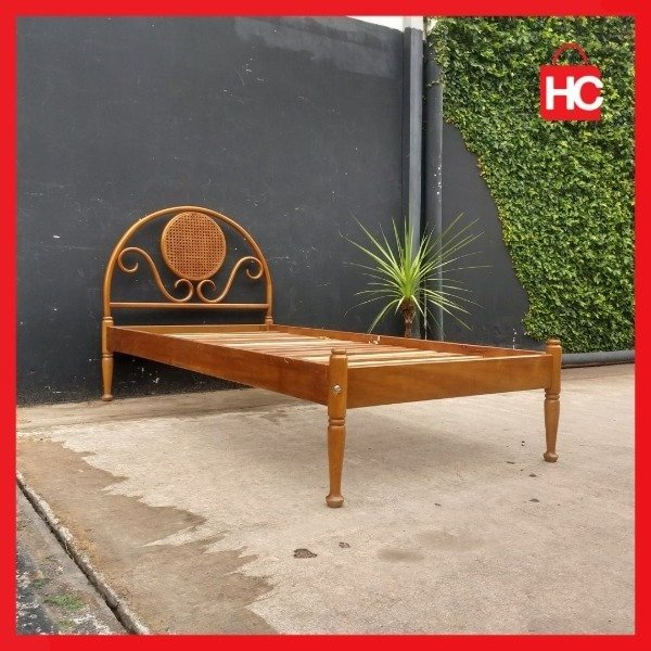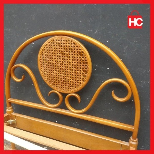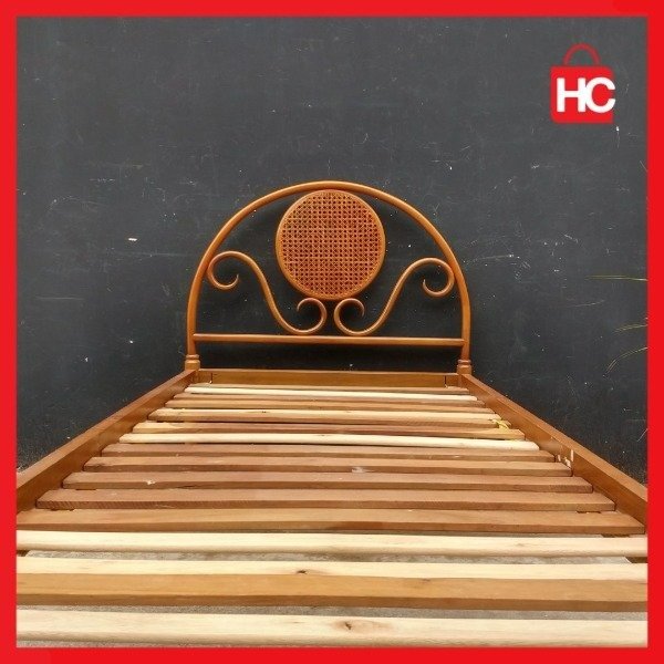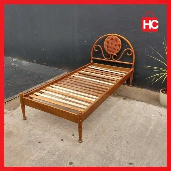 ¡Dale un toque de elegancia y calidez a tu habitación! Esta cama de una plaza es una verdadera joyita. Su respaldo curvo con esterilla de rattan está impecable y le da una onda vintage que es súper tendencia. Es de madera maciza, muy firme y está lista para garantizarte el mejor descanso. Ideal para un cuarto juvenil, de invitados o para crear tu propio rincón con estilo. ¡Un clásico que no pasa de moda!
