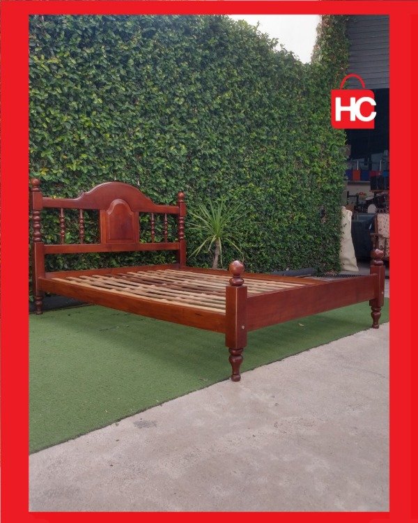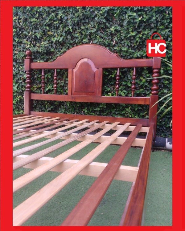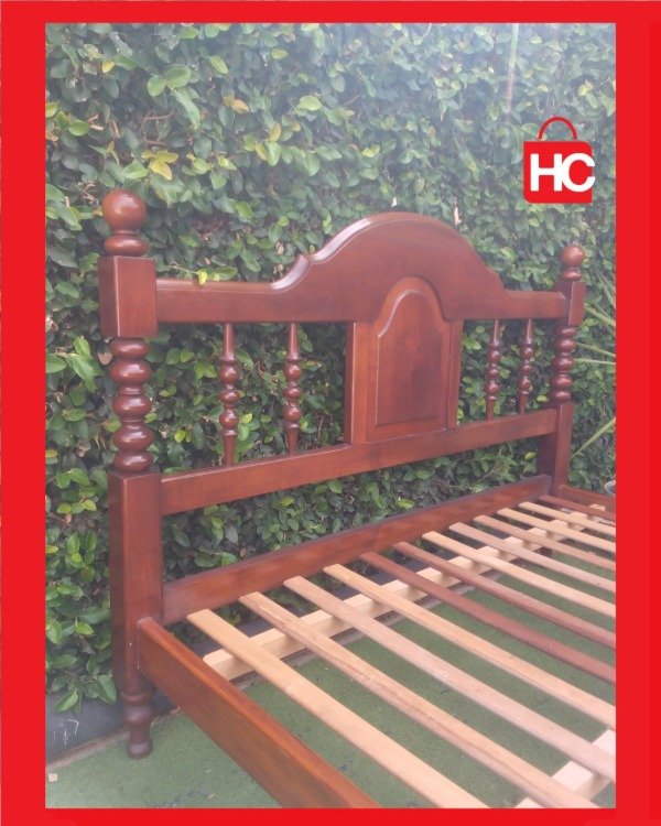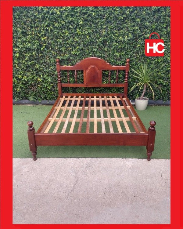 Se pone a la venta imponente cama de dos plazas confeccionada íntegramente en madera maciza de alta densidad. Se destaca por su estructura robusta y un diseño clásico con delicados detalles torneados tanto en el respaldo como en la piecera, brindando elegancia y calidez al hogar.