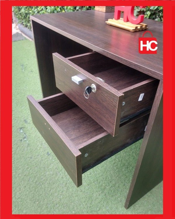 Se pone a la venta práctico escritorio de oficina o estudio, ideal para optimizar el área de trabajo. Su diseño funcional integra una cajonera lateral de dos compartimentos, incluyendo cerradura de seguridad en el cajón superior para el resguardo de documentación.