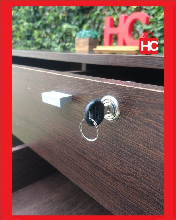 Material: Confeccionado en melamina de alta resistencia en tono madera oscura.