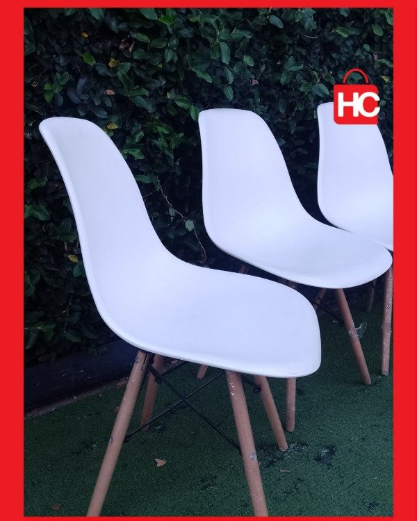 Si andás con ganas de renovar el comedor o darle un toque moderno a la cocina, este juego de 4 sillas Eames negras es un golazo. El diseño es re lindo, con la base de madera y metal que combina con todo. Tienen el uso lógico de haber estado en una casa, algún raspón normal en el plástico si te fijás de cerca, pero están firmes y súper cómodas.
