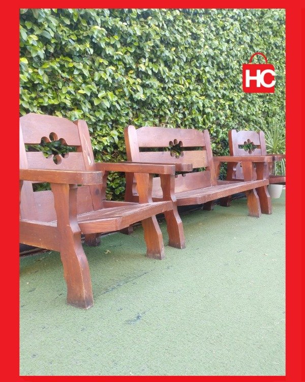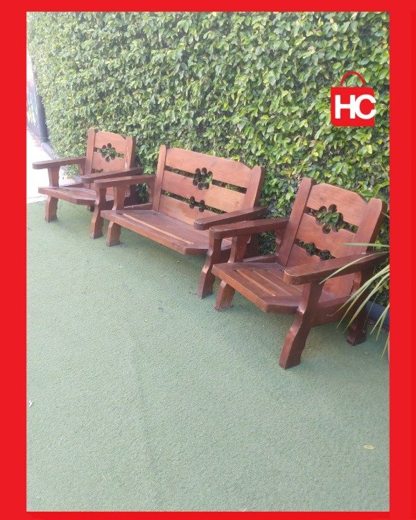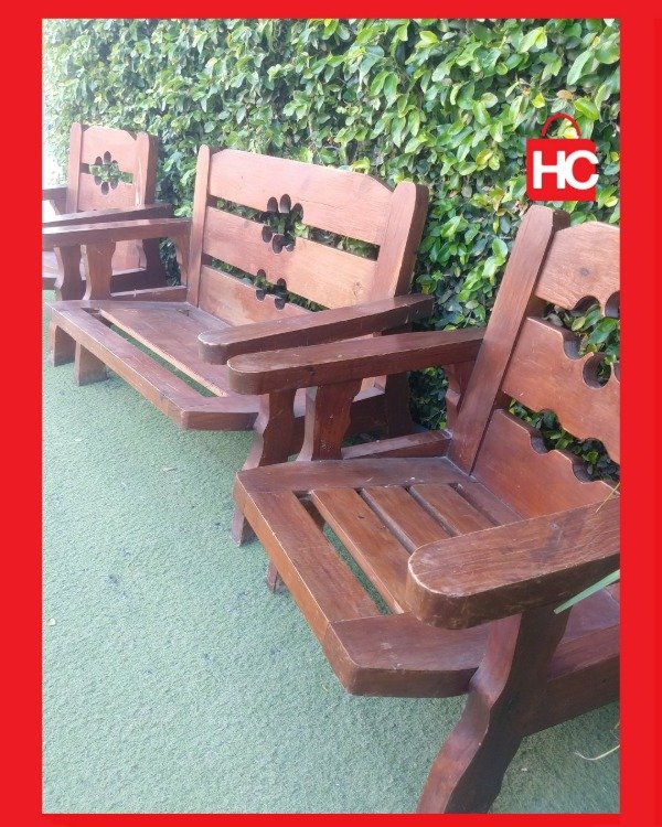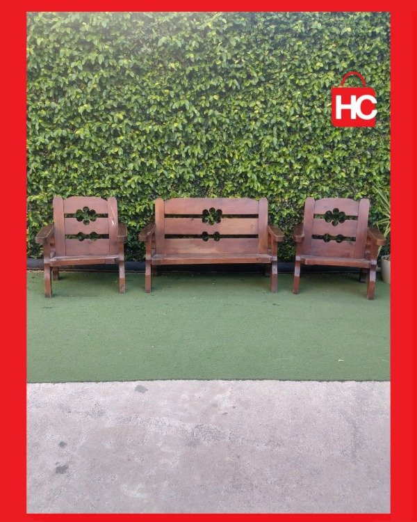 ¡Prepará tu galería o jardín para disfrutar a pleno! Este juego de living de madera maciza es todo lo que necesitás. Incluye un sillón de dos cuerpos y dos individuales, súper robustos y con un estilo rústico que queda bien en cualquier parte. Perfecto para el quincho, el patio o para crear ese rincón especial al aire libre. ¡Una oportunidad única de llevarte el combo completo y que empiecen las juntadas! Medidas: Sillón 2 cuerpos 1.29 x 0.65 x 0.80 m; Individuales 0.73 x 0.65 x 0.80 m.