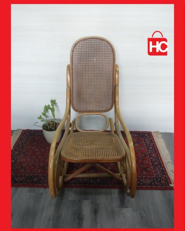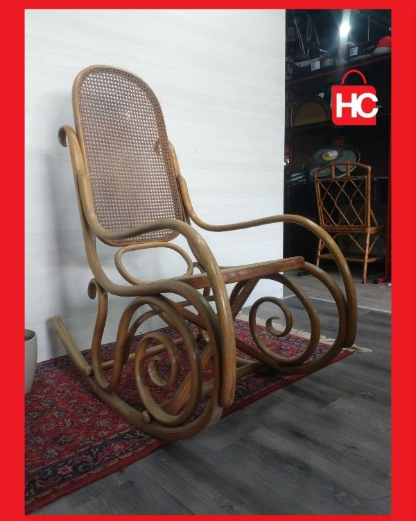 ¡Mirá qué belleza para sumar calidez y personalidad a tu casa! Esta mecedora con esterillado artesanal y curvas en madera es un mueble con historia, de un estilo que remonta a los diseños Thonet atemporales. Es una pieza súper cómoda para disfrutar de un buen libro o simplemente de un momento de paz. El trabajo de la madera está en muy buen estado y el diseño es único. ¡Llevate un verdadero clásico y hacelo circular!