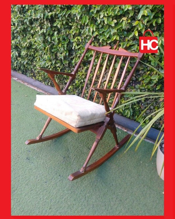 ¿Querés sumarle un toque cálido y con mucha onda a tu casa? Esta mecedora es la respuesta. Su diseño de madera torneada es una bomba, de esos muebles que visten un rincón por sí solos. Es súper cómoda (¡viene con el almohadón!) y el balanceo es ideal para aflojar después de un día largo. Queda genial en el living, en el cuarto o en ese balcón con plantas. ¡Un mueble con alma que te va a cambiar la energía del espacio! Medidas: 90 cm de alto x 56 cm de ancho x 79 cm de prof.