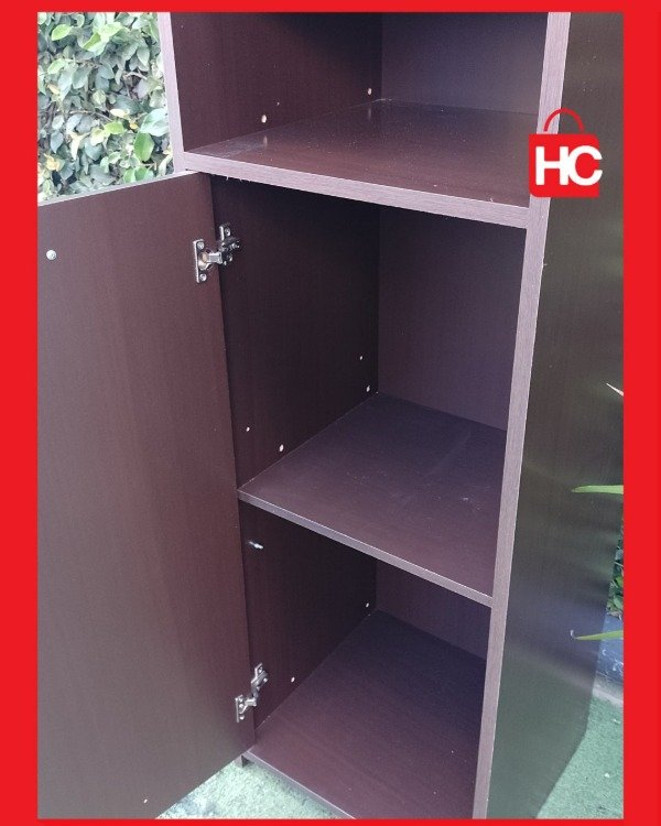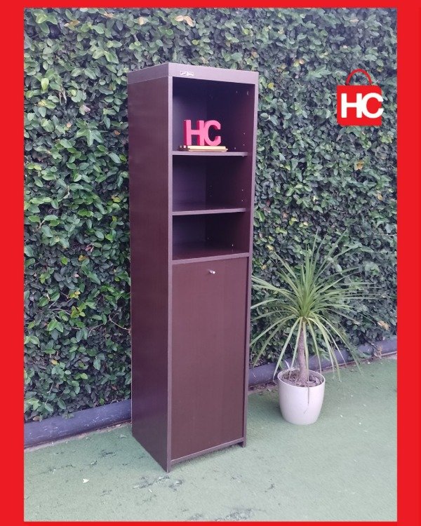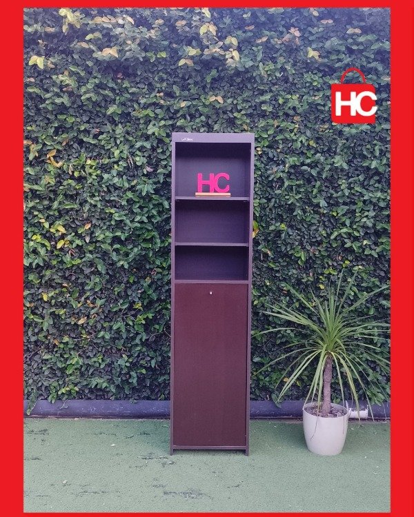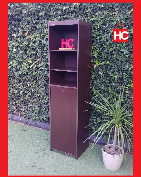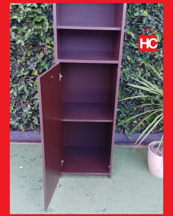 Si andás con poco lugar y necesitás poner orden, este mueble es la solución justa. Es bien espigado (mide 1,80m de alto), así que aprovecha bárbaro el espacio hacia arriba sin ocuparte casi nada de piso. Tiene estantes abiertos arriba para lo que necesitás tener a mano y una puertita abajo para guardar lo que no querés que se vea. No es nuevo, tiene sus marcas típicas de haber estado en una casa, pero está firme y cumple su función de diez.