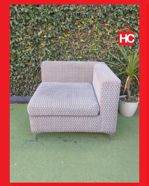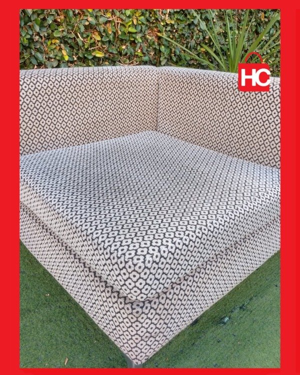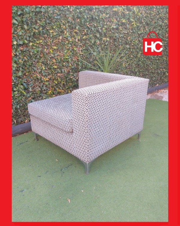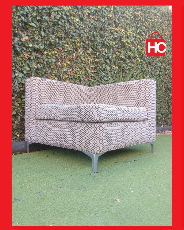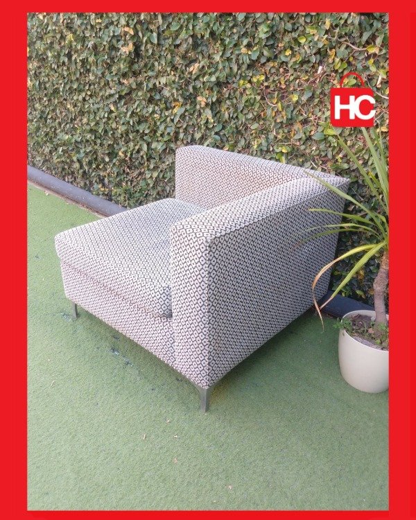 ¡El complemento perfecto para tu living! Este sillón esquinero individual tiene un diseño cuadrado súper generoso que invita al relax. El tapizado con trama geométrica en tonos grises y blancos es tendencia y le da un aire moderno a cualquier espacio. Sus patas de metal le aportan firmeza y un toque de elegancia contemporánea. Podés usarlo solo o como parte de un conjunto modular. ¡Comodidad y estilo en una sola pieza! Medidas: 1.00 m x 1.00 m.