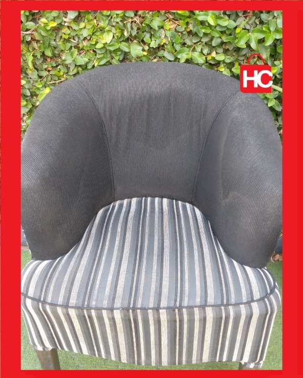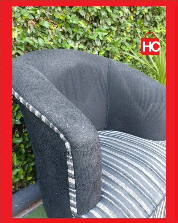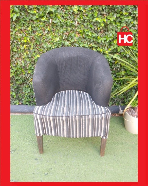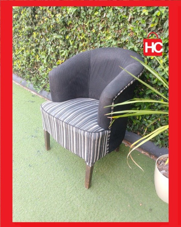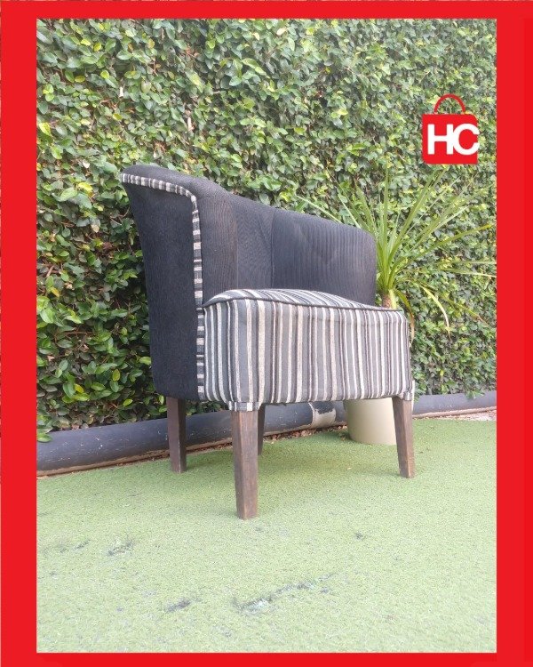 Se pone a la venta distinguido sillón individual de un cuerpo, ideal para aportar estilo y confort a su hogar. Su diseño envolvente se destaca por un exclusivo tapizado combinado en tonos negro y gris, con asiento rayado que jerarquiza cualquier ambiente.