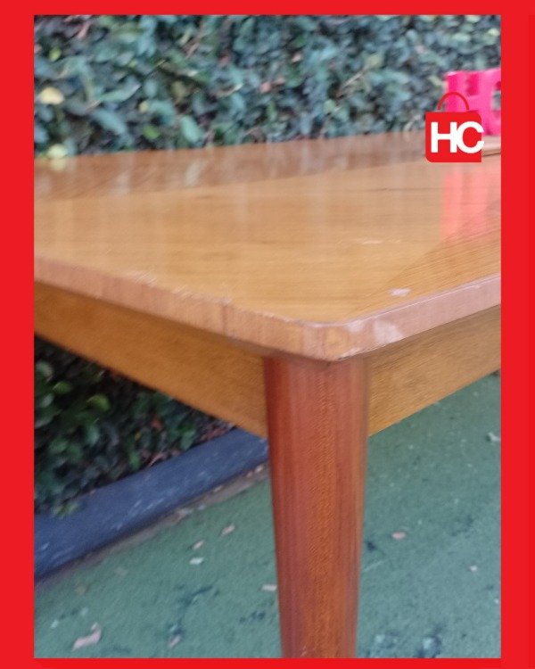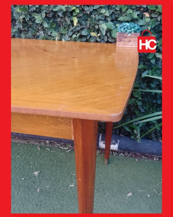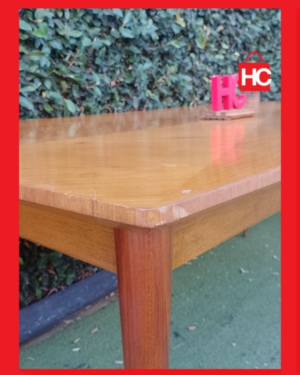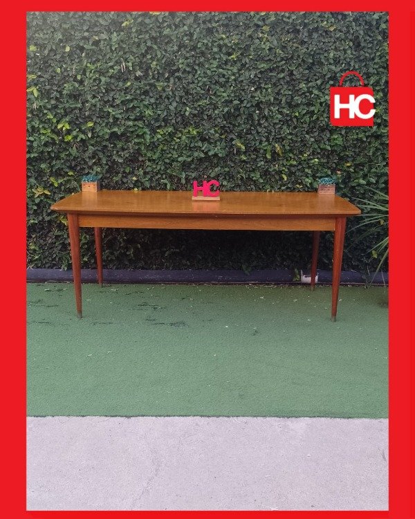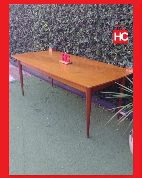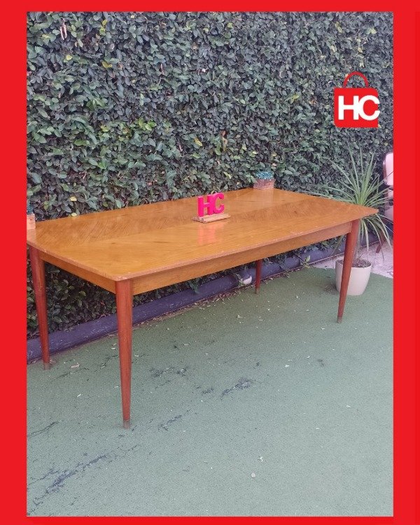 ¡Mirá lo que es esta nave para recibir a todo el mundo! Con sus dos metros de largo, es la aliada ideal para esos domingos de familia grande o juntadas con amigos donde nadie quiere quedar afuera. Tiene un diseño de vetas muy canchero en la tapa y unas patas aguja que le dan ese toque retro que queda bien en cualquier lado. Es una mesa firme, con presencia, lista para ser el centro de tus mejores reuniones. ¡Vení a verla porque piezas así vuelan!