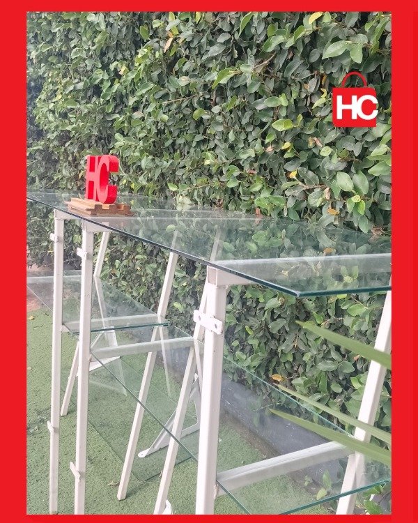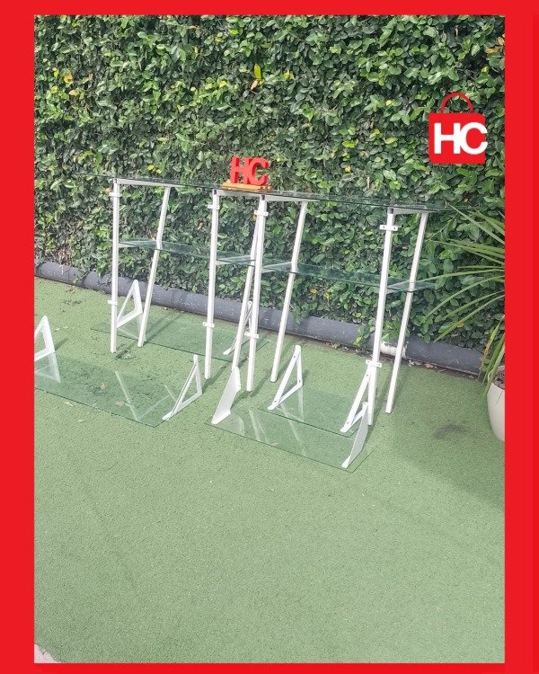 ¡Para que tus productos sean los protagonistas! Este mostrador es una pieza clave para cualquier local comercial. Tiene una estructura metálica blanca muy sólida y está rodeado de vidrios impecables que permiten una visión total de lo que quieras exhibir. Además, cuenta con estantes internos también de vidrio, lo que maximiza el espacio de muestra de forma muy prolija.