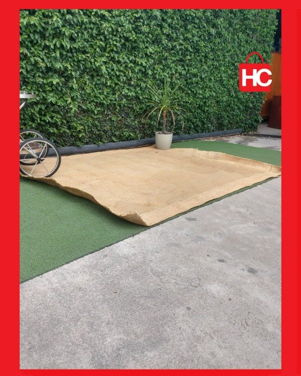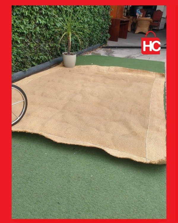 ¡Mirá qué buena esta alfombra para sumar calidez! Es de fibras naturales (o tipo yute), de esas que le dan una onda rústica y súper canchera a cualquier living o comedor. Es genial porque es de un color neutro que combina con todo. Además, es gigante (¡2.45 x 1.96m!), ideal para delimitar bien el espacio de los sillones. ¡Te va a hacer el ambiente mil veces más acogedor!