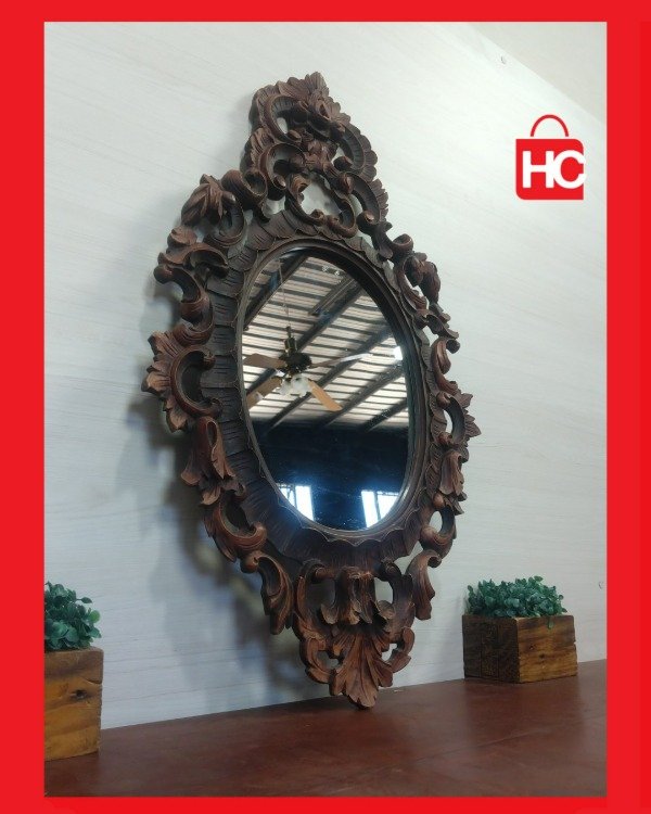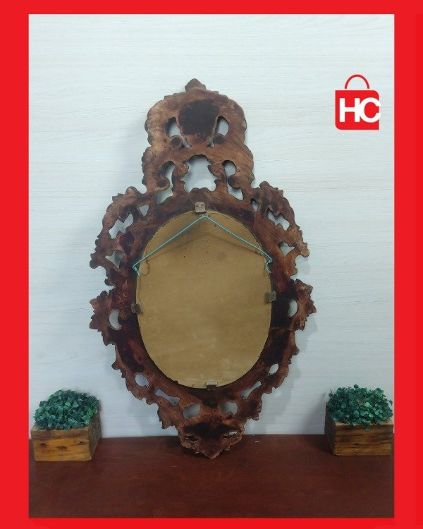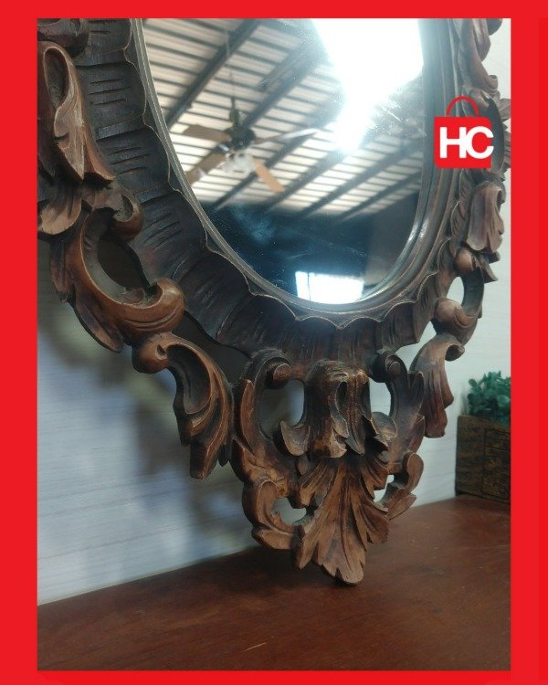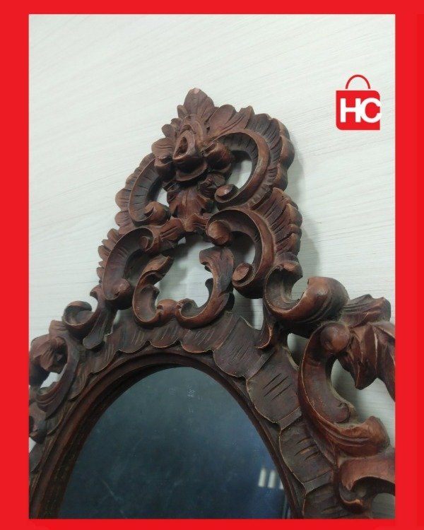 Llegó un espejo con un marco que es pura artesanía, ¡tenés que verlo de cerca! Es la solución ideal si buscás un elemento decorativo fuerte y con historia que se robe las miradas. Lo seleccionamos por el detalle del tallado en la madera oscura que te garantizan elegancia y un toque dramático en tu living o recibidor. Ideal para sumar profundidad al ambiente. Detalles: Espejo con marco de madera tallada (Estilo Barroco/Rococó). Dimensiones: 49 cm ancho x 72 cm altura.