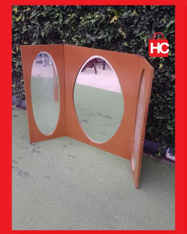 Elegimos este artículo para nuestra colección por su singularidad y su excelente factura original. Es una unidad seleccionada por la integridad de su marco de madera y la claridad del espejo central. Si bien los paneles laterales muestran marcas propias de la edad del cristal, esta pieza conserva su elegancia y funcionalidad intactas. Perfecto para quienes buscan un clima acogedor y sofisticado, valorando la pátina del tiempo como un elemento de diseño.