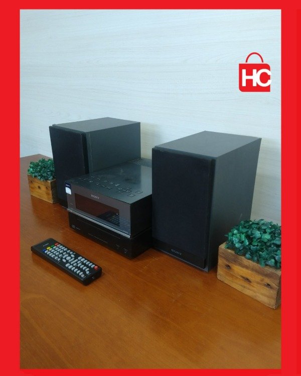 ¡Mirá qué caño este equipito Sony! Es ideal para la pieza, el living o el escritorio. Suena bárbaro, con parlantes de madera que le dan un sonido re nítido. Pero lo mejor es lo conectable que es: tiene entrada AUXILIAR (RCA) atrás, ideal para conectarle la tele y usarlo de "home theater", y además tiene entrada de audio frontal (plug) para el celu o la compu. ¡Un golazo! Obvio, también lee CDs (MP3) y tiene radio. ¡Viene con el control! Medidas: Unidad 22x28x14 cm; Parlantes 14x22x25 cm (Ancho/Prof/Alto).