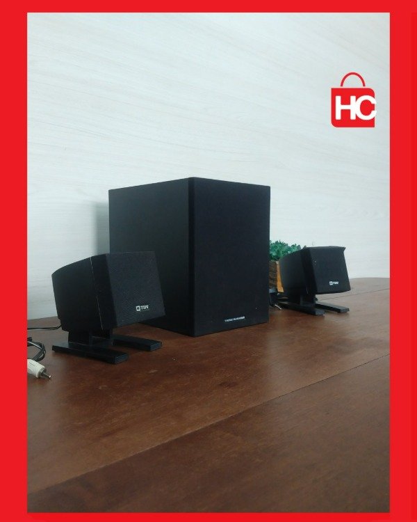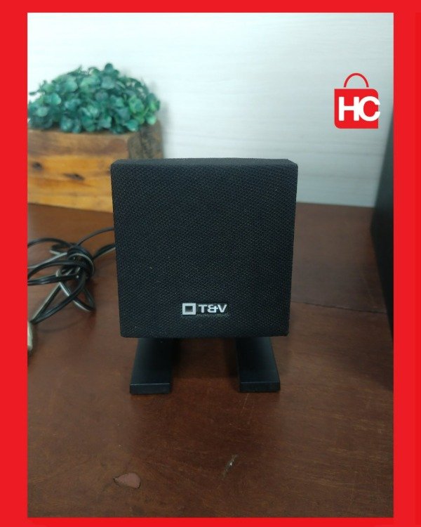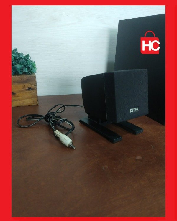 ¡Si querés mejorar el sonido de tu compu o la tele, esto es lo que buscás! Es un sistema 2.1 de Thonet & Vander (modelo Spiel), que tiene una calidad de audio bárbara. El subwoofer de madera le da unos graves profundos que te cambian la experiencia de escuchar música o ver pelis. Es compacto, entra en cualquier escritorio, pero suena grande. ¡Te va a sorprender la potencia que tiene! Medidas subwoofer: 22 cm de alto x 15 cm de ancho x 20 cm de prof.