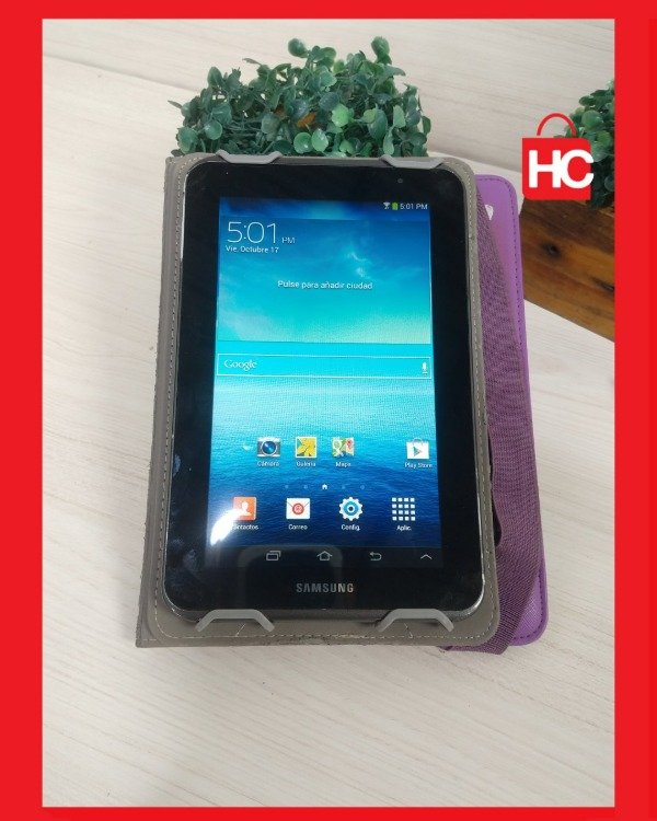 ¡Mirá qué piola esta tablet Samsung! Es el tamaño ideal (parece de 7") para llevar en la mochila o la cartera sin que te pese nada. Es genial para leer, chequear mails, ver YouTube o para que los chicos jueguen un rato. ¿La ventaja? ¡Viene con la funda incorporada! Así ya la tenés protegida desde el primer día. Una tablet súper práctica para las tareas del día a día.