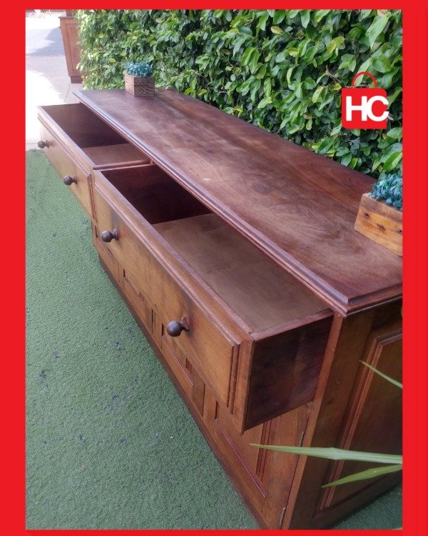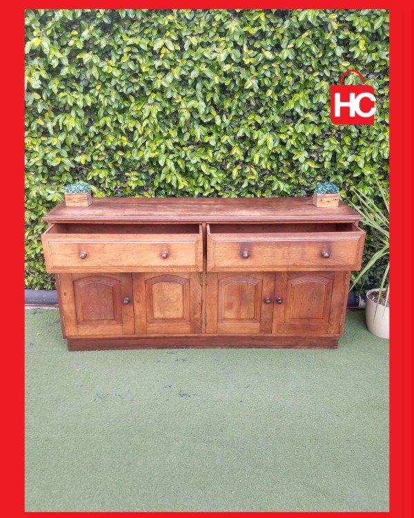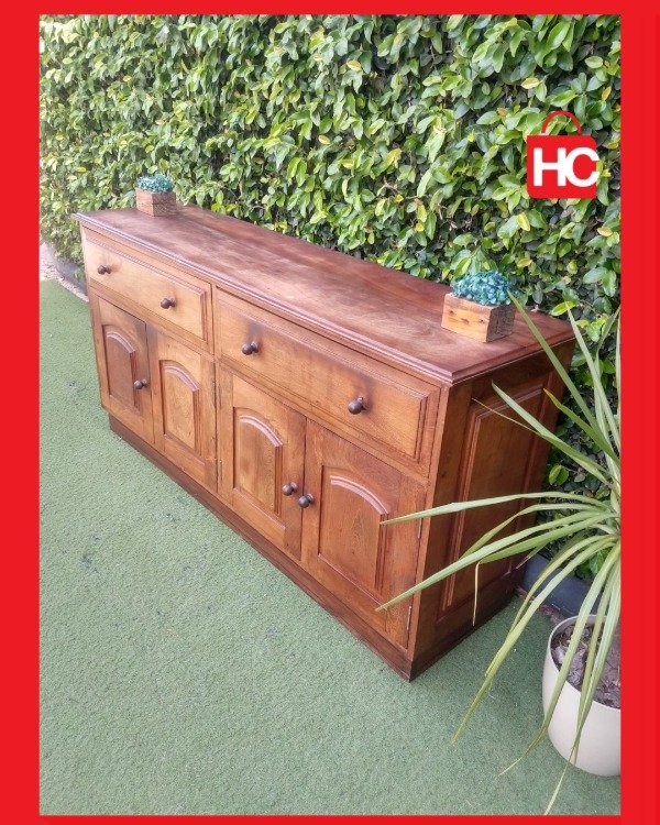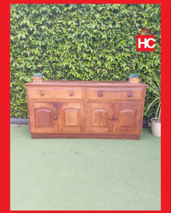 Este bahiut de algarrobo macizo es la pieza perfecta para darle un aire clásico y sofisticado a tu comedor o living. Con un gran espacio de guardado, combina cuatro cajones amplios y cuatro puertas para que puedas organizar tu vajilla, mantelería o lo que necesites con total comodidad. ¡Un mueble robusto y duradero que te acompaña por generaciones!