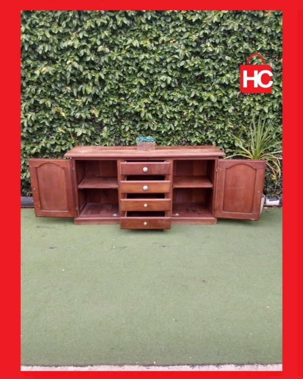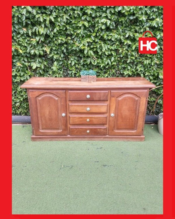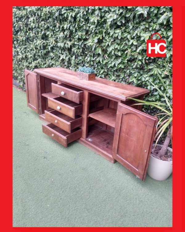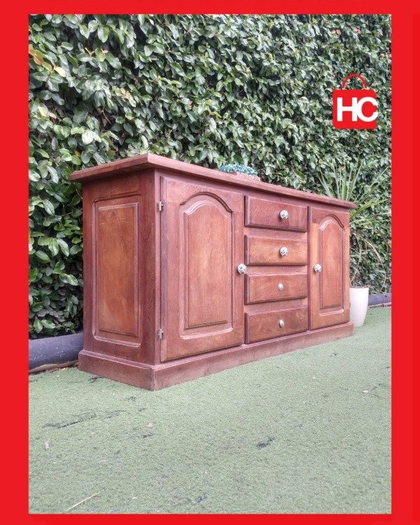 ¡Acá tenés un mueble para toda la vida, literal! Es un bahiut de algarrobo macizo, un verdadero tanque. Es ideal para el comedor o el quincho porque te soluciona el orden al toque. ¿La ventaja? Tiene 4 cajones centrales para cubiertos y manteles, y 2 puertas a los costados para guardar toda la vajilla. Te olvidás del desorden. ¡Un clásico que se banca todo! Medidas: 71 cm de alto x 1.44 m de ancho x 43 cm de prof.