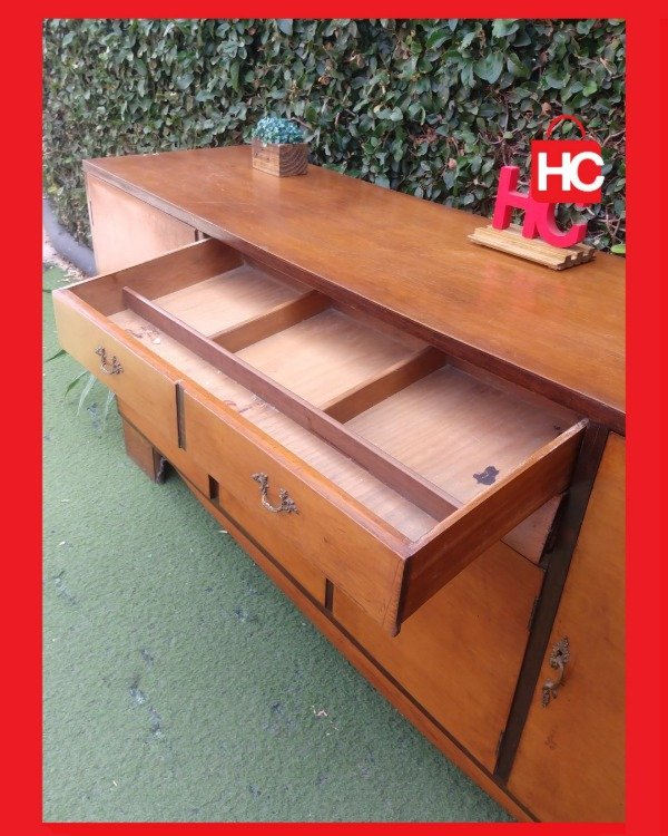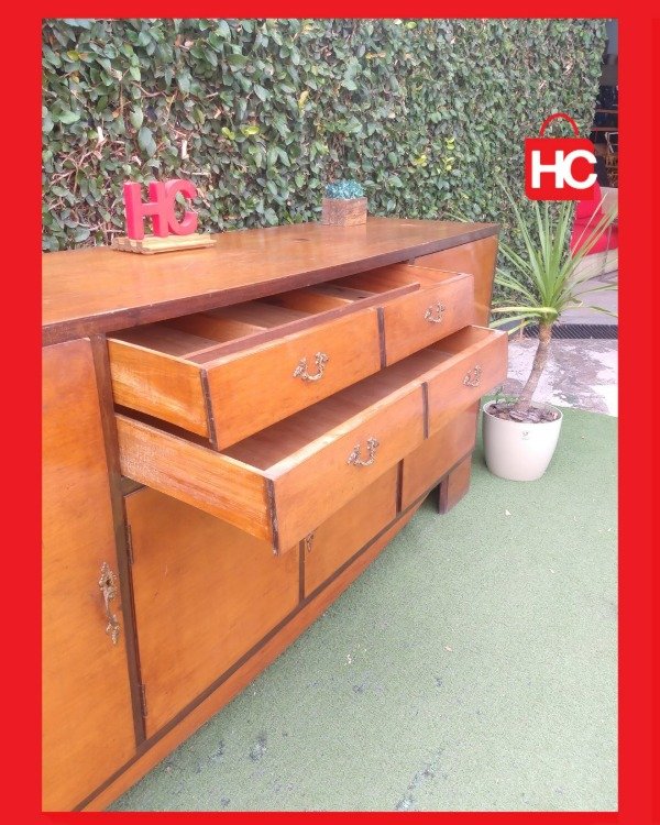 ¡Mirá qué mueblazo para el comedor! Este bahiut es súper largo (2.09m), ideal para casas grandes o para darle una presencia imponente a tu living. Tiene puertas y cajones para guardar de todo: desde la vajilla hasta manteles. La tapa es ancha y perfecta para apoyar una barra, adornos o tu centro de entretenimiento. ¡Un clásico elegante y funcional! Medidas: 90 cm de alto x 2.09 m de ancho x 51 cm de prof.