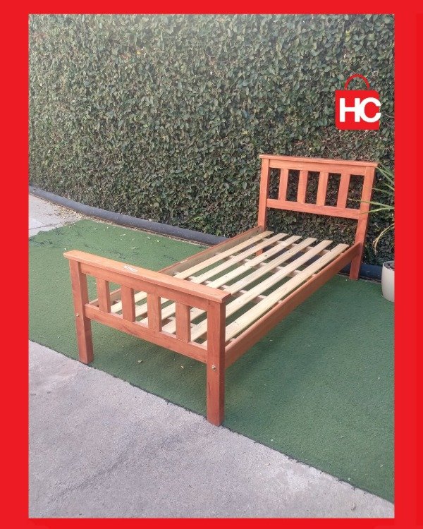 ¿Querés que el cuarto tenga un toque cálido? Esta cama de pino es la solución. El tono de la madera es re lindo y el diseño de listones es un clásico que no pasa de moda. Te sirve para un dormitorio principal chiquito o para equipar un cuarto juvenil. ¡Un mueble firme que te dura mil años!