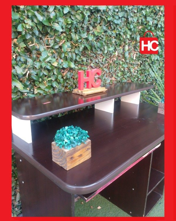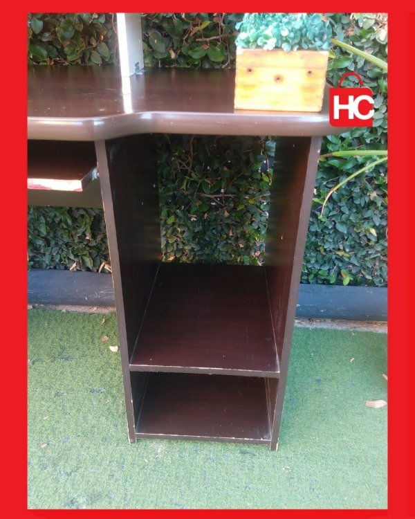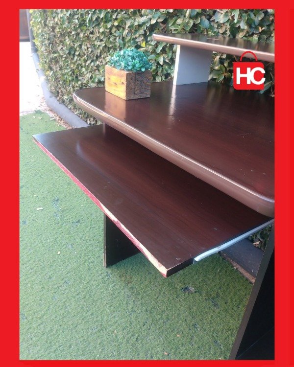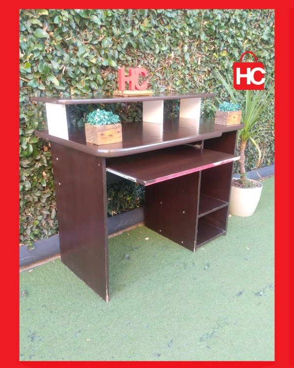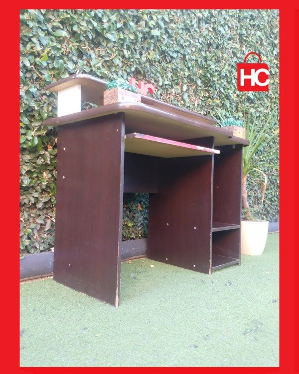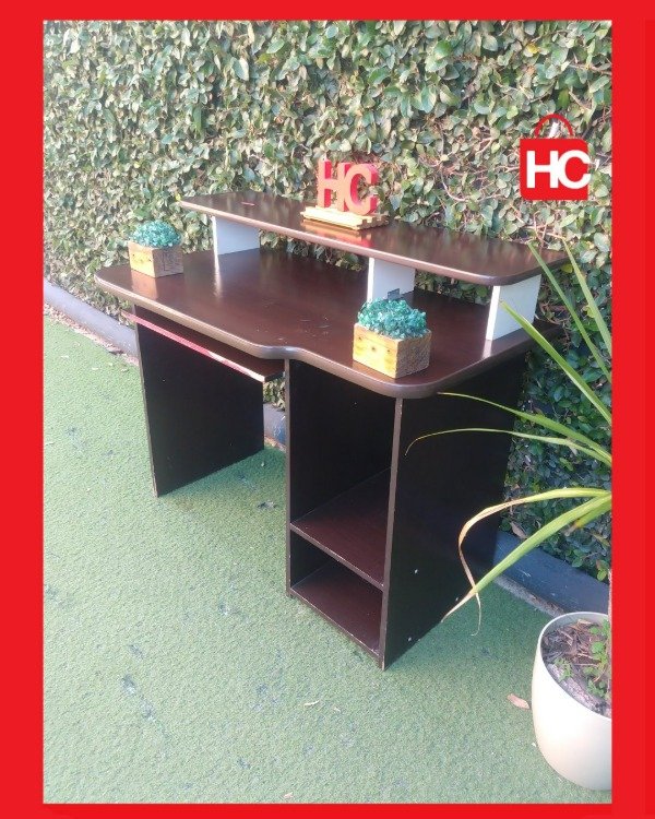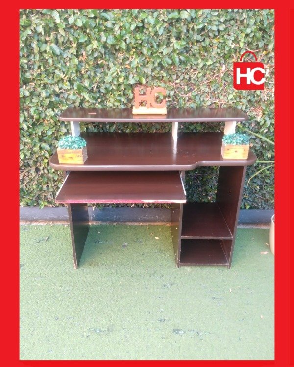 ¡El escritorio que necesitás para tu rincón de trabajo o estudio! Este mueble es súper funcional: tiene una bandeja deslizable para el teclado (que te libera espacio en la mesa), y estantes abajo para el CPU o libros. El color marrón oscuro (wengue) es re elegante y queda bien en cualquier ambiente. ¡Ideal para optimizar un espacio chico! Medidas: 89 cm de alto x 1.07 m de ancho x 58 cm de prof.