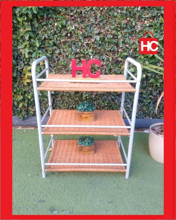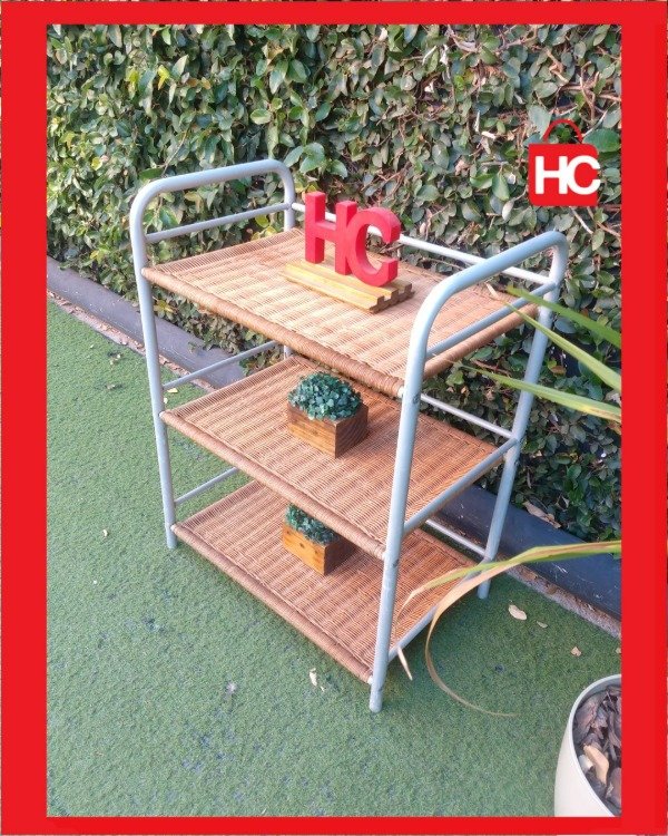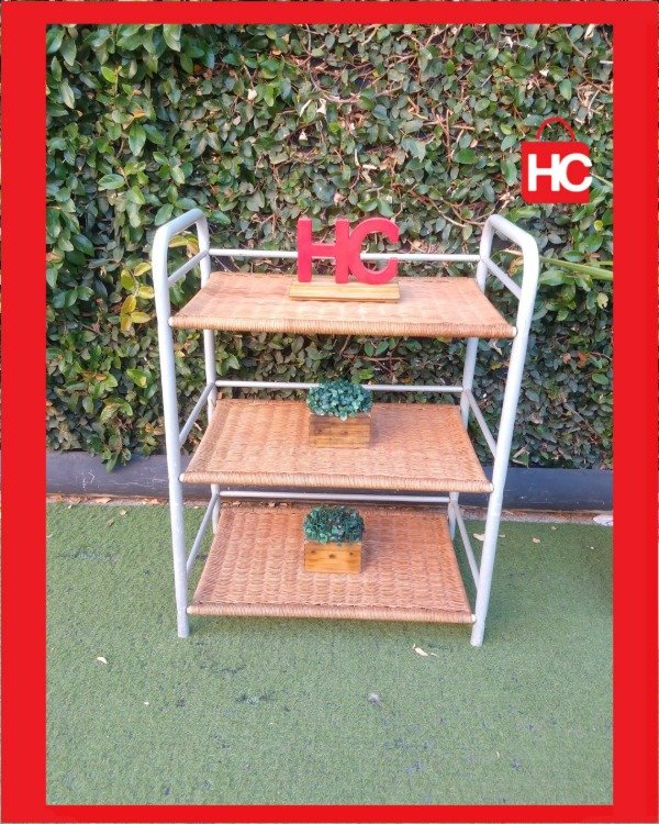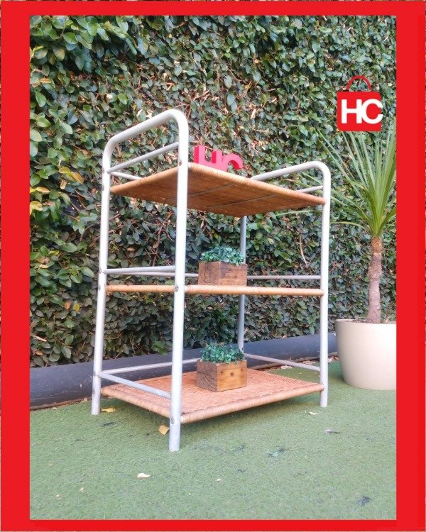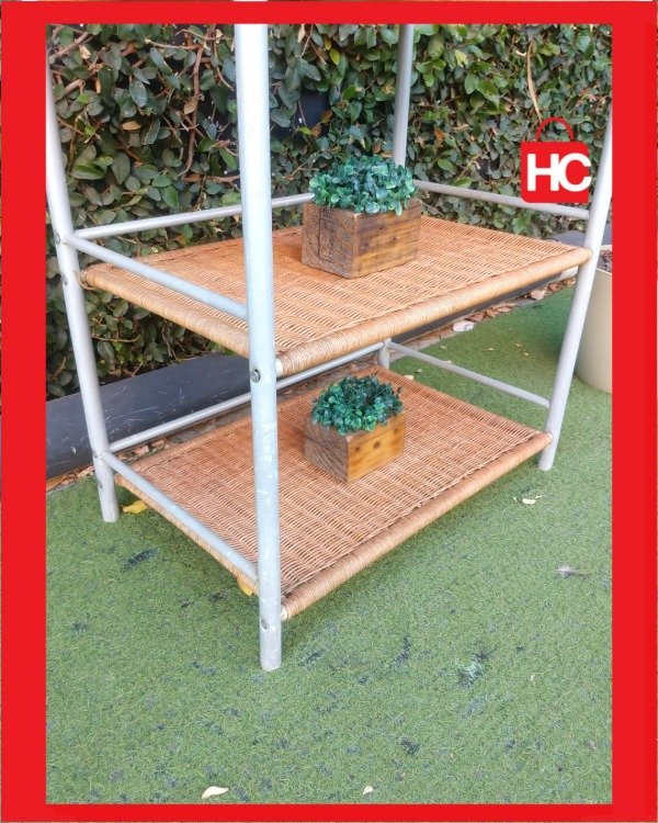 ¿Necesitás ganar espacio de guardado sin que el mueble te pese visualmente? ¡Es esta! Es súper práctica, tiene 3 estantes de mimbre que son resistentes y la estructura de caño es re firme. Es el organizador ideal para un lavadero, un balcón o el cuarto. Es liviana y la movés sin dramas. ¡Un comodín que te va a encantar! Medidas: 77 cm de alto x 59 cm de ancho x 37 cm de prof.