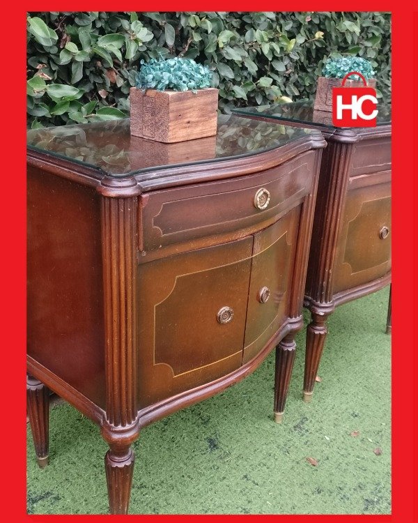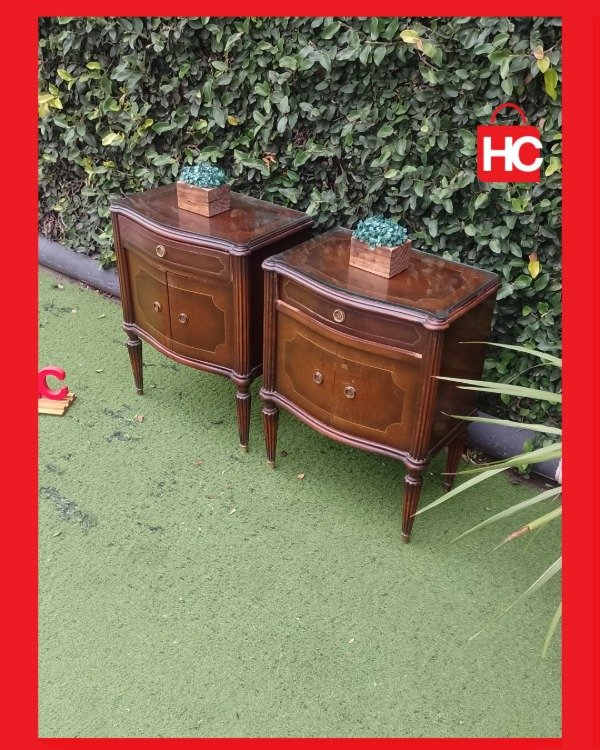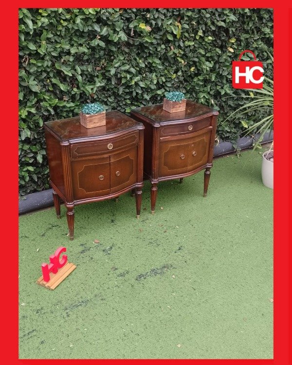 ¡Un hallazgo para darle un toque de clase a tu cuarto! Este par de mesitas destaca por su diseño distinguido y su excelente conservación. Cuentan con un cajoncito superior y puertas abajo, ideal para tener todo organizado y a mano. Lo mejor es que vienen con sus vidrios protectores, así que podés disfrutarlas tranquilo. Es esa pieza que te arma el dormitorio y le da una sensación de hogar y calidez inmediata. ¡Vení a verlas que vuelan!