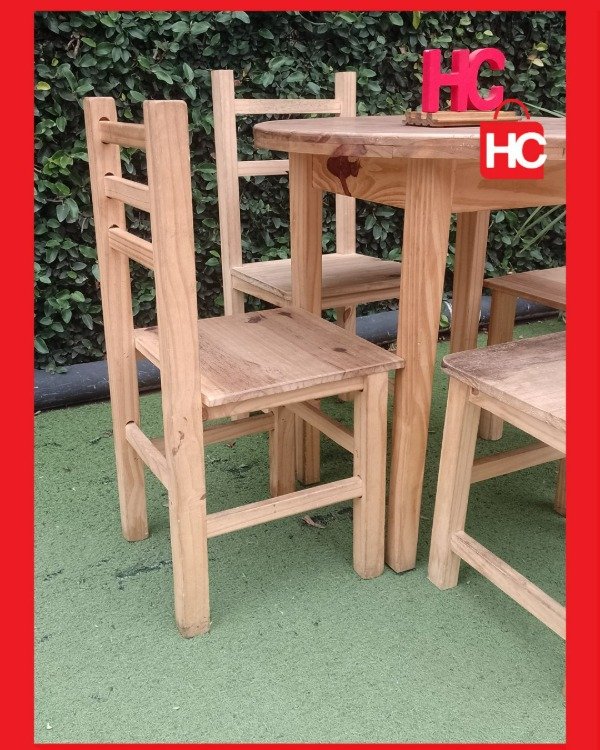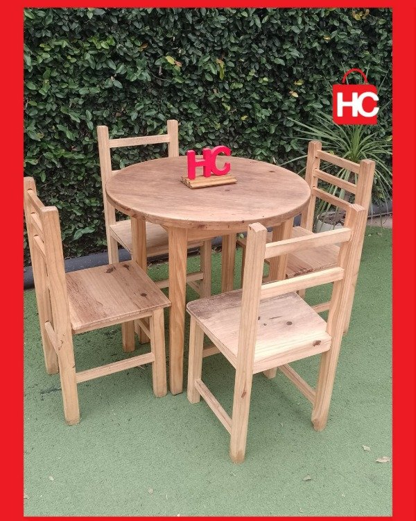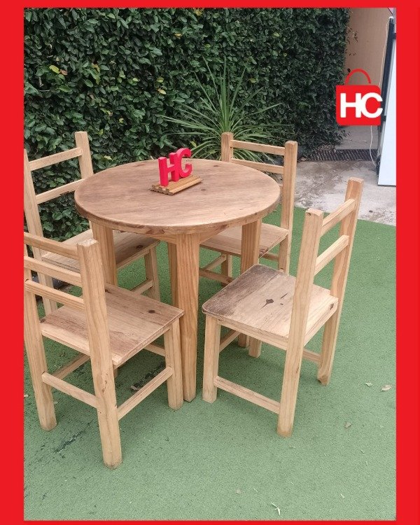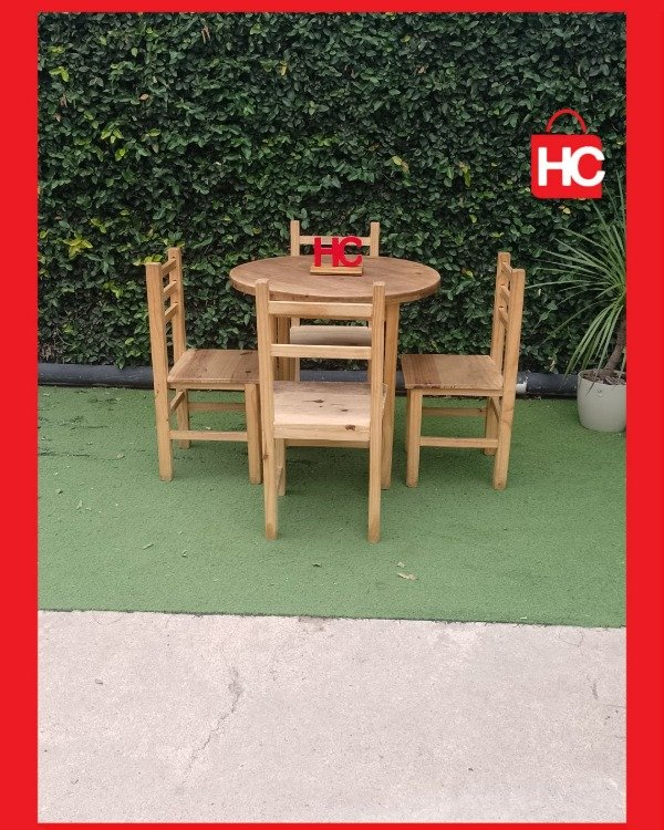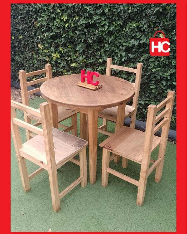 ¡Ideal para esos rincones de la casa donde la vida pasa de verdad! Este jueguito de mesa redonda y cuatro sillas es el compañero perfecto para la cocina o ese quincho que pide a gritos reuniones. Al ser de pino natural, te da esa sensación de frescura y calidez de las Sierras. Lo mejor es que podés dejarlo así, bien rústico, o pintarlo como más te guste para que combine con tu onda. ¡Es sentarse y empezar a compartir!