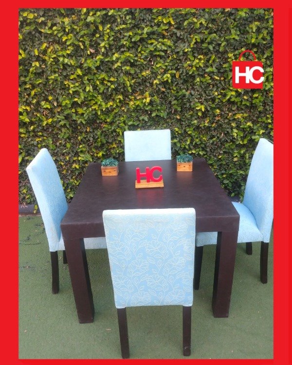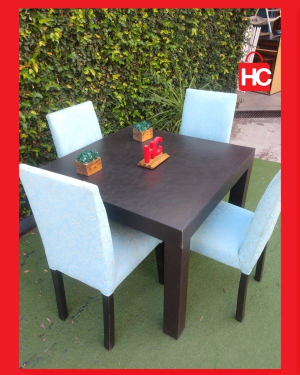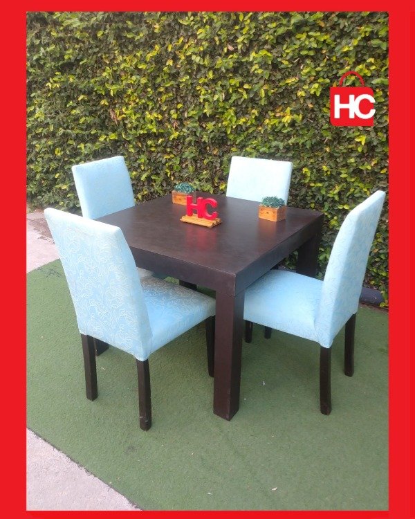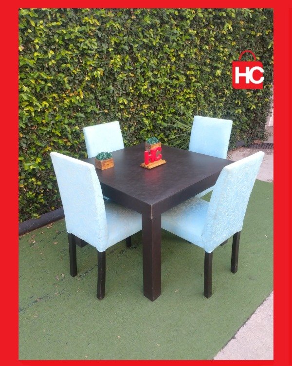 ¿Buscás un cambio con estilo para tu comedor? Te presentamos este juego de mesa cuadrada en madera oscura con 4 sillas tapizadas en un tono celeste suave con diseño floral. Una combinación que equilibra elegancia y comodidad, ideal para crear un ambiente fresco y moderno.