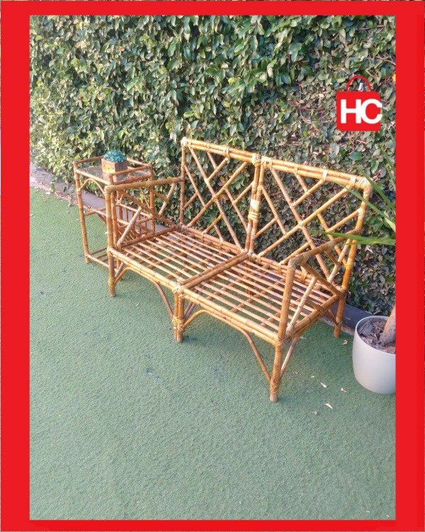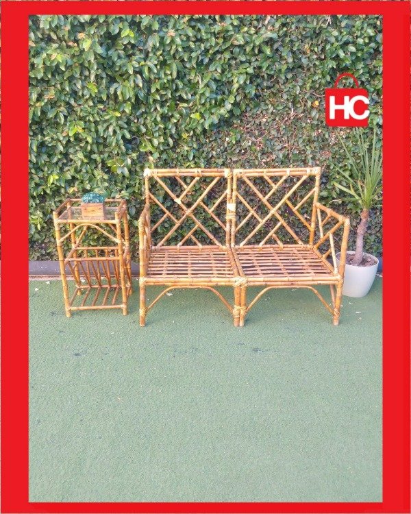 ¡Mirá qué combo perfecto para tu balcón o galería! Es un sillón de caña de dos cuerpos, ideal para compartir unos mates, y viene con la mesita a juego que es un golazo: tiene tapa de vidrio y un revistero abajo. Le da una onda súper natural y relajada a cualquier espacio. Es liviano, resistente y tiene ese estilo artesanal que queda divino. ¡Listo para disfrutar el aire libre! Medidas sillón: 80 cm de alto x 1.12 m de ancho x 56 cm de prof.