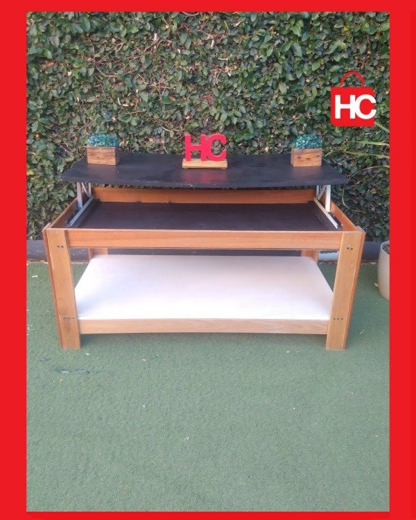 ¡Se terminó comer o trabajar encorvado en el sillón! Esta mesa es un golazo porque la tapa se levanta a la altura justa para apoyar la compu, comer o tomar el mate. Es súper práctica porque tenés espacio de guardado abajo para los controles, mantas o revistas. ¡Te soluciona el living al toque con un solo mueble! Medidas (cerrada): 52 cm de alto x 1.12 m de ancho x 58 cm de prof.