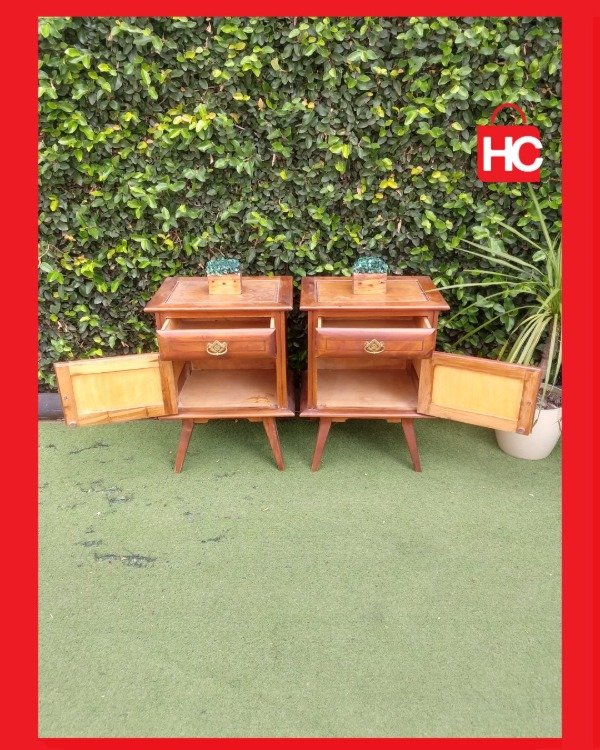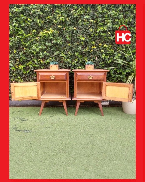 ¿Buscás darle un toque retro y sofisticado a tu cuarto? Te presentamos este par de mesitas de luz de madera con un diseño impecable. Sus líneas simples y patas estilizadas las hacen perfectas para combinar con cualquier estilo de deco, aportando esa calidez que solo la madera real puede dar.