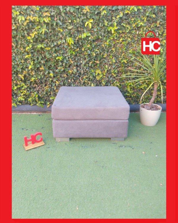 Detalles: Puf cuadrado tapizado en tela tipo chenille o gamuzada color gris/marrón claro. Patas de madera reforzadas. Dimensiones: 82 cm ancho x 84 cm profundidad x 43 cm altura.
