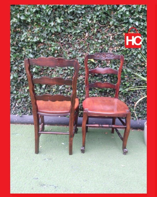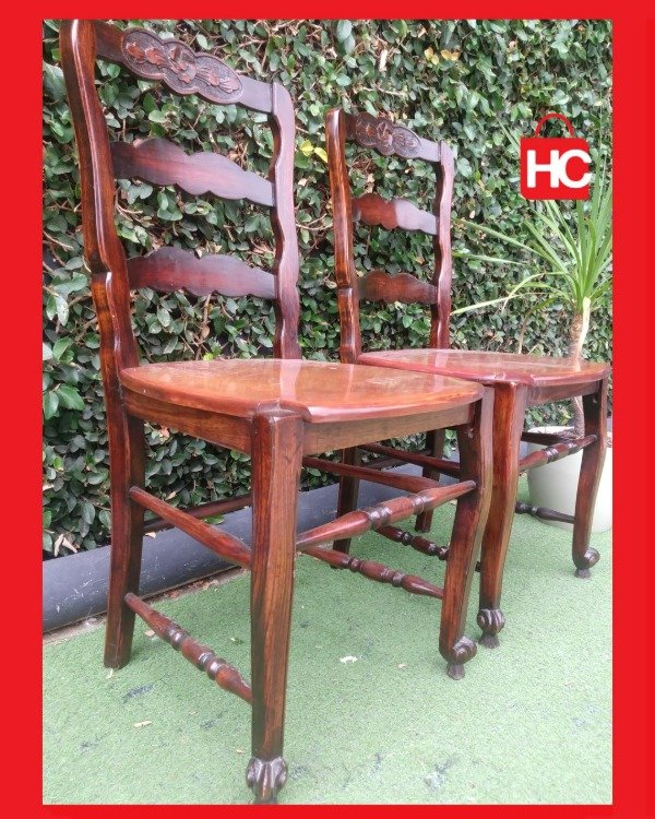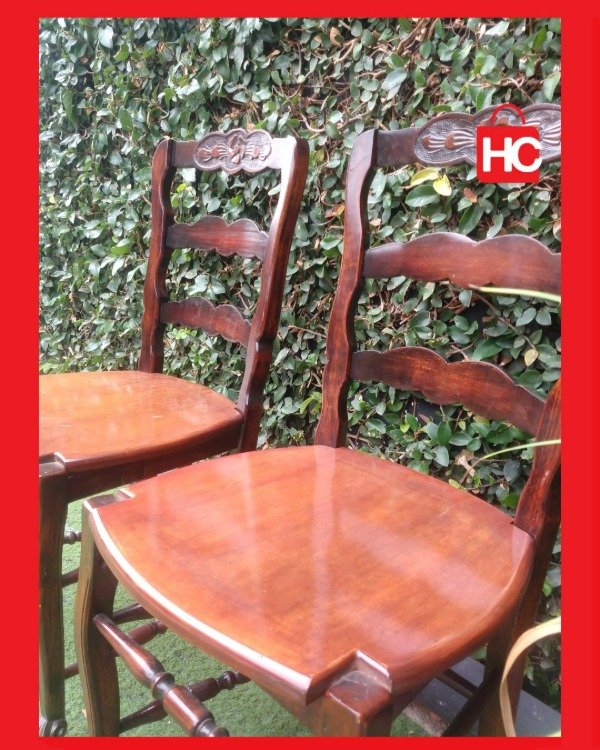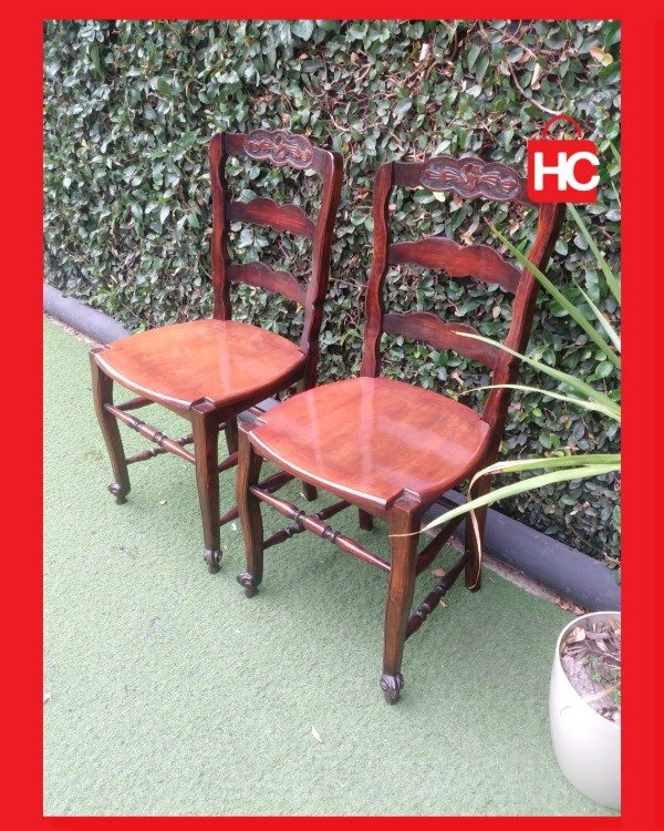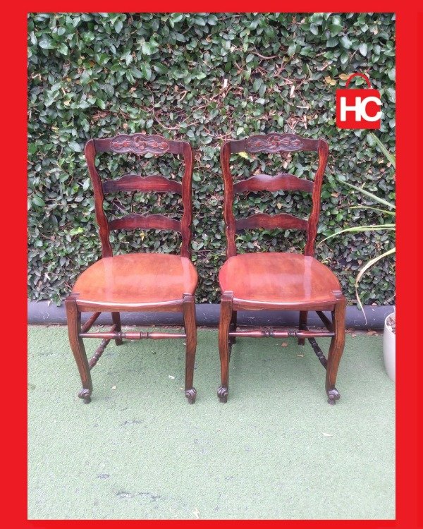 Te presentamos este par que te permite transformar la sensación de un rincón aburrido en algo elegante. Su estilo con respaldo tallado crea un ambiente acogedor y con ese aire clásico que tanto se busca. Te facilita la vida resolviendo un par de asientos elegantes y funcionales para el living, hall o dormitorio. Una inversión en estilo. Detalles: Par de sillas antiguas. Estilo con respaldo alto y tallado. Dimensiones: 45 cm ancho x 45 cm profundidad x 95 cm altura.