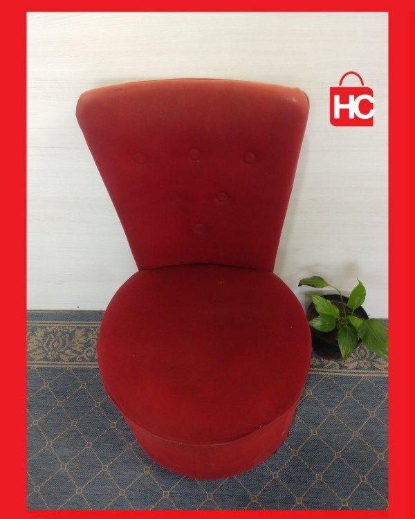 ¡Este sillón es pura personalidad! Es una silla de estilo con el tapizado en ese rojo intenso que es una bomba. El detalle del capitoné en el respaldo (alto, 86cm) le da un toque de elegancia increíble. Es perfecta para un rincón de lectura, al lado de un tocador o para darle un acento de color al living. ¡Se roba todas las miradas! Medidas: 86 cm de alto x 53 cm de ancho x 50 cm de prof.